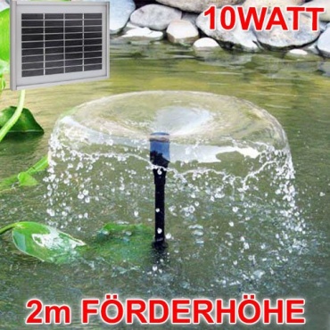Die verbesserte SOLAR TEICHPUMPE Oasis 1000-1 wird mit der Kraft der Sonne betrieben und setzt diese Energie in einer Fontäne aus sprudelndem Wasser um. Die schönen Fontänen können dank des innovativen Pumpensystems jahrelang bewundert werden, ohne das man an die wachsenden Strompreise denken muss. Im Schatten oder bei dichter Bewölkung muss man leider auf das Wasserspiel verzichten.