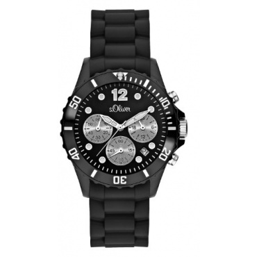 - Die schwarze Damen-Armbanduhr Chronograph Silikon von der Marke s.Oliver hat eine Datums- und 24-Stunden-Anzeige, sowie eine Stoppfunktion.