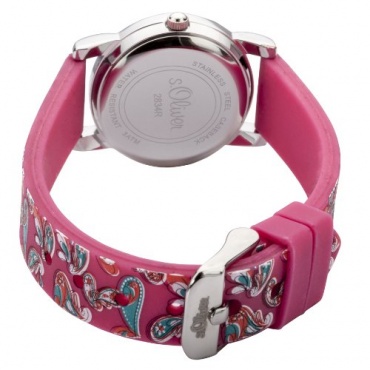 Für Mädchen optimal geeignet ist die attraktive Armbanduhr von s.Oliver. Von dem schönen Blumenmuster, welches das Zifferblatt und das Armband schmückt, werden die Mädchen begeistert sein. Das Armband hat eine Breite von 14 mm und besteht aus Silikon. Dadurch, dass die Uhr wasserfest ist, kann sie auch den Sommer im Schwimmbad genutzt werden.