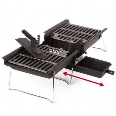 Der Grill Son of Hibachi Picknickgrill, Holzkohlegrill zeichnet sich durch faszinierende Eigenschaften aus. Zum einen reinigt es sich von alleine und zum anderen löscht er das Feuer von alleine. Der ideale Grill für unterwegs, für den Garten oder die Terrasse. Das Anzünden findet nur im Aschekasten statt, was einen enormen Sicherheitsaspekt bietet. Das Fett von dem Grillgut tropft ebenfalls in den Aschekasten.
