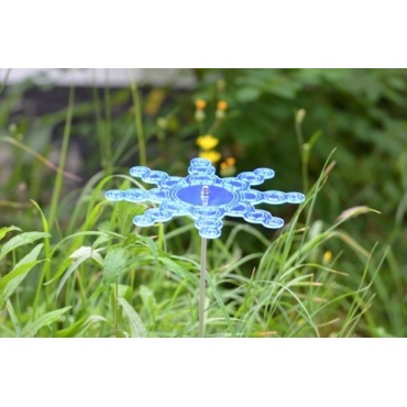 Ein formschöner Sonnenfänger aus blauem Acrylglas. Das Motiv ist elegant und bringt sich überall schick ein. Mit dem angebrachten Stab kann man diesen Dekorationsartikel schnell und problemlos einsetzen. In die Erde im Garten, oder in die Blumentöpfe auf der Fensterbank.