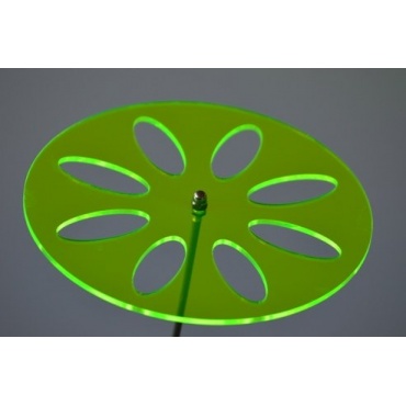 Der große und dauerhaft vorhandene Effekt ist eine Folge des verwendeten Materials. Der Hersteller setzt hierbei auf fluoreszierendes Acrylglas, welches UV Licht besonders gut aufnehmen und sehr lange speichern kann. Interessant ist zugleich, dass der Sonnenfänger nicht statisch an einem einzigen Ort zu finden ist, sondern mit einem 32 cm langen Schwingstab versehen ist, welcher somit Dynamik und Bewegung in diesen Sonnenfänger Einzug halten lässt. Ebenfalls interessant ist die Größe mit einem Durchmesser von 18 cm.