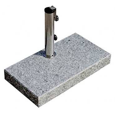 Mit 25 kg Gewicht und kompakten Maßen passt der Schirmständer gut unter Tische sowie auf kleinere Balkone oder Terrassen. Er ist aus massivem grauen Granit, einen Naturstein, gefertigt, der sich durch Widerstandskraft, Härte und Wetterfestigkeit auszeichnet. Das lange Edelstahlrohr, das für sicheren Halt des Schirms sorgt, ist von ebenso hoher Qualität. Deshalb gibt es für diesen Markenartikel auch 5 Jahre Garantie.