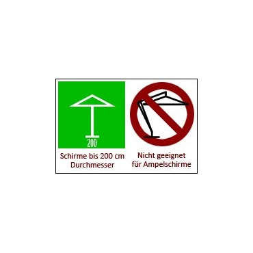 | Geeignet für Schirme mit Durchmesser | 200 mm | |