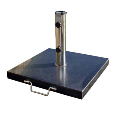 Massiv aus Granit gefertigt ist der Sonnenschirmständer. Der Sonnenschirmständer ist mit einem Edelstahlrohr ausgestattet. Dieses Edelstahlrohr hat eine Stärke von 1.2 mm und eine höhe von 30 cm. Aufgrund vom Edelstahlrohr kann der Sonnenschirmständer Schirmstöcke von einer Stärke von 32 bis 48 mm aufnehmen. Der Sonnenschirm kann hierbei einen maximalen Durchmesser von 200 cm haben. Der Sonnenschirmständer lässt sich einfach transportieren, möglich machen dies zwei Kunststoffrollen sowie ein Transportgriff aus Edelstah. Die Abmessungen vom schwarzen Sonnenschirmständer betragen 45 x 4.5 x 45 cm. Das Gewicht vom Sonnenschirmständer beträgt 25 kg.
