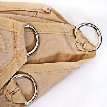 Das dreieckige Sonnensegel mit den großzügigen Maßen von 3,6 x 3,6 x 3,6 m ist aus 100 % atmungsaktivem und wasserabweisendem Polyester-Material gefertigt. Der robuste Stoff eignet sich hervorragend als Sonnenschutz, da er bis zu 90 % der UV-Strahlungen abfängt und so idealen Schutz vor allem für Kinder beim Spielen bietet. In hellem Beigeton wirkt das Segel unaufdringlich und ist gut mit anderen Farben der Garteneinrichtung kombinierbar. Das hochwertig verarbeitete Sonnensegel wird mit praktischen Seilen für die einfache Montage geliefert, welche in den stabilen Ösen ihren Platz finden. So kann das Segel variabel an gewünschter Stelle befestigt werden.