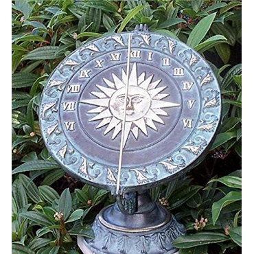 Diese Sonnenuhr, hergestellt aus hochwertigem Bronzeguss, ist eine Besonderheit für jeden Garten. Der sich ändernde Stand der Sonne am Himmel wird als Tageszeit angezeigt. Der Schatten des Stabes dient als Zeiger, dieser bewegt sich abhändig vom Stand der Sonne über das Zifferblatt. Die ersten Sonnenuhren waren in der Antike in Gebrauch. Die Sonnenuhr bereichert den Garten, selbst wenn die Sonne nicht scheint, als Dekorationsstück.