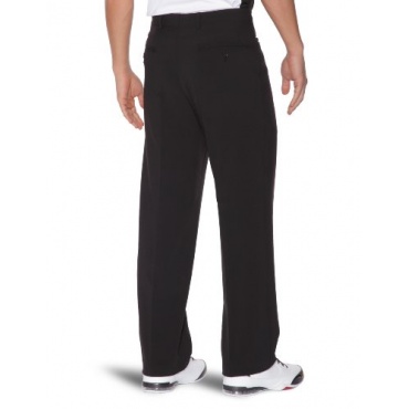 Die schwarze Schiedsrichter Hose bietet sowohl vorne als auch hinten jeweils zwei Taschen. Hier können Utensilien und brauchbare Gegenstände wie Karten, Pfeifen, Schlüssel etc. auch während aktiver Tätigkeit verstaut werden. Die hinteren Taschen sind je zusätzlich mit einem Knopf versehen. Der Stoff der Hose ist zu 96 % aus Polyester und zu 4 % als Spandex.