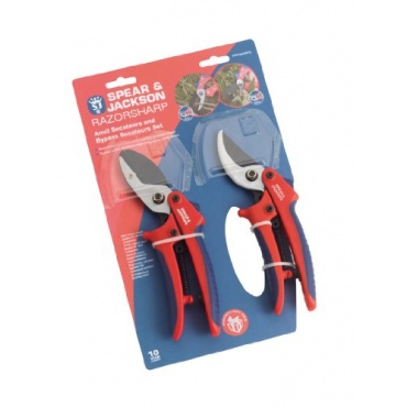 Aus einer Razorsharp Advantage Amboss-Gartenschere und einer Razorsharp Advantage Bypass-Gartenschere besteht das Gartenscheren-Set von Spear & Jackson. Die oberen Klinge bei beiden Scheren besteht aus PTFE-beschichtetem SK5 Karbonstahl und die unteren Klingen sind gegen Rostbefall hart verchromt. Dadurch ergeben sich bei den Scheren eine Rostbeständigkeit und eine lang anhaltende Schärfe. Beide Scheren sind für noch mehr Komfort mit ergonomisch geformten, weichen Griffen ausgestattet.