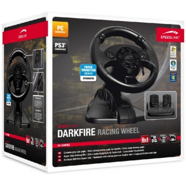 Das Speedlink Darkfire Lenkrad ist ein wunderbares Ergänzungsprodukt für jeden Game-Liebhaber! Die 2-Force-Vibration-Motoren übertragen sämtliche Geräusche aus dem Spiel zum Lenkrad und sorgen somit für ein unvergessliches Spieleerlebnis. Mit diesem extrem griffigen Lenkrad ist die Kontrolle über das Spiel jederzeit garantiert. Gemeinsam mit den Pedalen vereint das Produkt die virtuelle Spielwelt mit der Realität.
