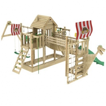 Die Spielanlage Wickey Santa Maria Klettergerüst bietet umfangreiche und außergewöhnliche Spielerlebnisse für Kinder. Als Wikingerschiff aufgebaut wird diese Spielanlage den Kindern phantasiereiche und lang dauernde Spielmöglichkeiten bieten.