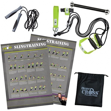 Die beiden getrennt von einander befestigbaren Schlaufen erhöhen dadurch die Vielfalt der Übungen. Dieser Slingtrainer ist nicht nur effektiv und für jedes Alter geeignet, sondern er ist ein absolutes Muss für jeden Sportler, der Wert auf ein gesundheitsbewusstes Training legt. Ein Tragebeutel, der Türanker, eine Multi Adaption, das Springseil von POWRX, ein gefaltetes DIN A2 großes Trainingsposter, der 10-Wochen-Trainingsplan sowie der 50 Euro Gutschein für eine Bodycross-Trainer-Ausbildung und ein Spacer sind im Lieferumfang dieses Sets enthalten. Das Set ist allerdings auch ohne Spacer lieferbar.