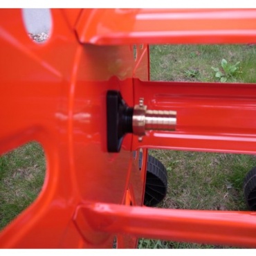 Der Schlauchwagen bietet zugleich dank seiner integrierten Trommel ein leichtes Auf- und Abrollen des Schlauches. Ebenfalls ein Plus ist die pulverbeschichtete Fertigung des Schlauchwagens, denn hiermit entsteht hohe Robustheit, welche den Schlauchwagen auch bei Regen und ähnlicher Witterung einsatzfähig werden lässt. Da sich zudem die Handkurbel rechts wie links anbringen lässt, kann dieses Produkt zugleich von Rechts- und Linkshändern gleichermaßen gezielt und überzeugend genutzt werden.