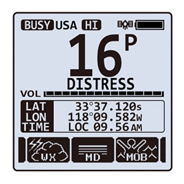 Über ein 43,2 x 43,2 mm großes LCD Display verfügt das Handfunkgerät. Das Display verfügt über eine Beleuchtung und zeigt den eingestellten Kanal an. Es ist aus Kunststoff hergestellt und wasserdicht. Es verfügt über eine 10 Kanal Kurzwahltaste und Funktionen wie GPS und DSC. Ebenfalls verfügt es für den Notfall über ein SOS Blitzlicht. Das Handfunkgerät kann mit einem 1800 mA Li-Ion Batterie betrieben werden oder mit normalen Batterien in der Größe AAA. Für das Aufladen vom Akku gehört beim Lieferumfang zum Handfunkgerät eine Ladeschale und ein 230 Volt Anschluss genauso dazu, wie ein Clip. Damit man das Funkgerät auch über den Zigarettenanzünder aufladen kann, gehört ein 12 Volt Kabel noch zum Lieferumfang. Es ist schwarz und kommt auf ein Gewicht von 1.1 kg.