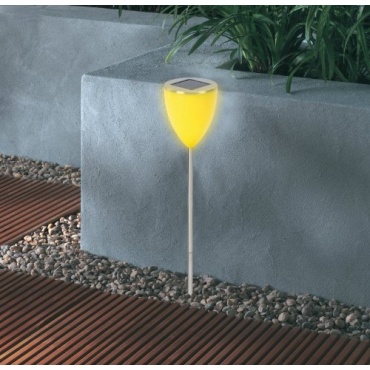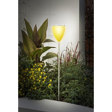 Durch ihren gelben Lampenschirm hüllt diese Solarleuchte ihre Umgebung in ein sehr schönes Licht. Trotz ihrer eher schlichten Gestaltung ist sie ein schöner Hingucker im Garten, auf der Terrasse oder sogar im Haus. Sie verfügt über einen Erdspieß der für einen stabilen Halt sorgt. Durch einen integrierten Lichtsensor schaltet sich die Stellar Solarleuchte bei Dunkelheit automatisch ein. Da sie komplett solarbetrieben ist, wird keine weitere Stromzufuhr benötigt und sie ist bei ausreichendem Sonnenlicht über Tag bei Dämmerung sofort einsatzbereit.