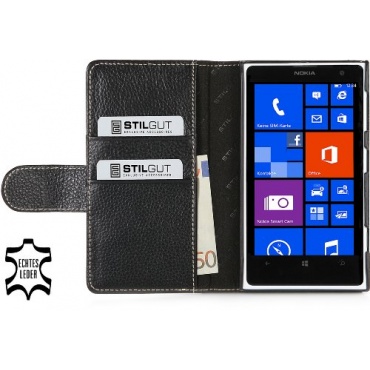 Die praktische Ledertasche von StilGut schlägt zwei Fliegen mit einer Klappe. Zum einen schützt sie das Handy und zum anderen kann sie gleichzeitig als Brieftasche verwendet werden. Die hochwertige Tasche für das Nokia Lumia 1020 ist aus echtem Leder gefertigt. Für die Verwahrung von Führerschein, Kreditkaren, Bargeld und Visitenkarten dienen drei Fächer mit Deckel.
