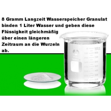 | Inhaltsstoffe | Langzeit Wasserspeicher Granulat | |
