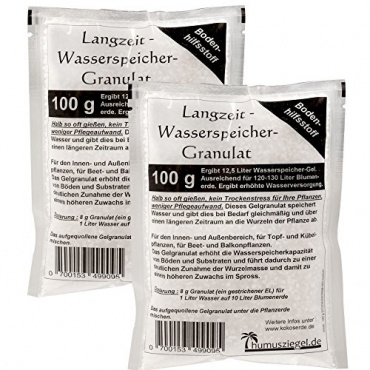 Manchmal braucht es einfach mehr, als nur Erde. Mit diesem Wasserspeicher Granulat haben die Pflanzen, aber auch Blumen selbst bei großer Hitze stets die Möglichkeit, genug Wasser zu haben. So sind Sonnenschäden, oder Trockenzustände so gut wie ausgeschlossen. Genau das Richtige, wenn mal für längere Zeit der Balkon in Ruhe gelassen wird, zwecks Urlaub.