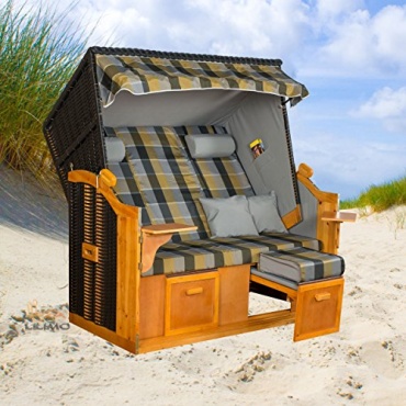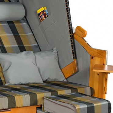 Die Rückenlehne des Strandkorbs kann fünffach verstellt werden, so dass man vom Sitzen bis zum kompletten Liegen verschiedenen Haltungen einnehmen kann. An den Seiten befinden sich kleine Tische, die ausgeklappt werden können und ein Getränk oder einen Teller halten können. Die Bezüge sind waschbar, so dass man den Strandkorb immer hygienisch sauber halten kann. Der Strandkorb wird schnell zum optischen Mittelpunkt im Garten, der auch Besucher magisch anzieht. Auf ein solches Möbelstück kann man mit Recht stolz sein.