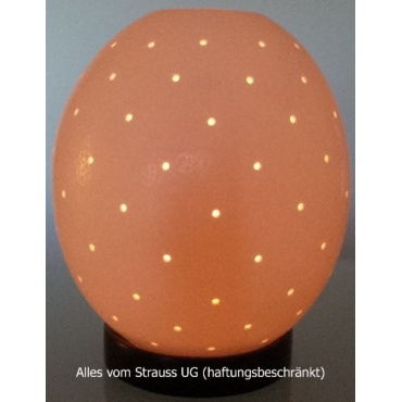 Mit seinen 145 Löcher sorgt das Straußenei Teelicht eine herrliche aber auch romantische Atmosphäre. Das Straußenei sollte jedoch nur von einem Teelicht beleuchtet werden. Es passt auf jede Art von Terrasse und im Garten. In der Wohnung sollte jedoch darauf geachtet werden. Das Straußenei Teelicht ist ein einzigartiges und wunderschönes Wohnaccessoires das einfach zu allem möglichen passt.
