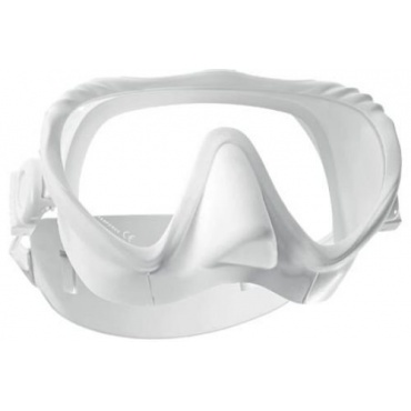 Aus Silikon verarbeitet ist die Tauchmaske. Bei der Tauchmaske handelt es sich um eine Zweiglasmaske, die mit einem Nasenerker ausgestattet ist. Zur Befestigung der Tauchmaske, ist diese mit einem Maskenband mit einem Schnellverschluss versehen. Das Gewicht der Tauchmaske liegt bei 599 Gram. Aufgrund vom geringen Gewicht von 599 Gramm, lässt sich die Tauchmakse sehr gut tragen. Farblich ist die Tauchmaske vollständig in einem weißen Design gehalten. Als Zubehör gehört zur Tauchmaske noch ein zusätzliches Maskenband für den Austausch.