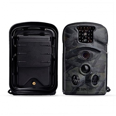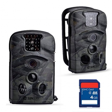 SUNLUXY Farb- CMOS Wildkamera 12 Mega- Pixel hat einen 120 Grad Weitwinkel, mit einem LCD Bildschirm und 4 G SD Karte. Er verfügt über einen Infrarot und ist IP54 wasserdicht. Die Kamera dient sehr gut als Jagdkamera, sowie als Überwachungskamera und als eine Fotofalle.