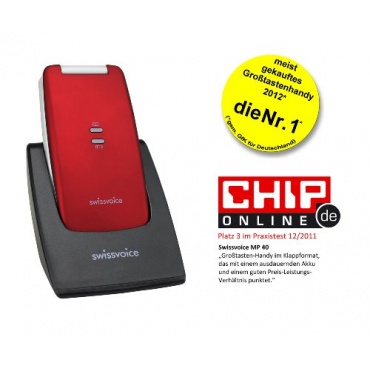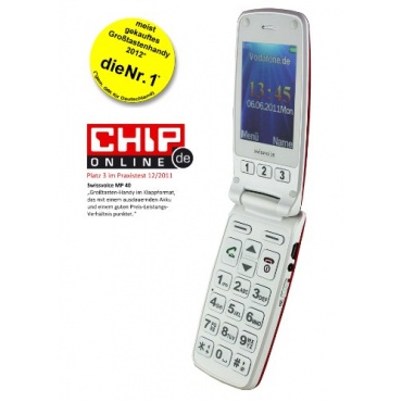 Auf dem ersten Blick unterscheidet sich das Seniorenhandy Modell MP40 GSM vom Hersteller Swissvoice, nur bei den großen Tasten im Vergleich zu einem herkömmlichen Handy. Doch das Seniorenhandy kann noch mehr, so ist es auch mit einer Notruftaste ausgestattet. Aufgrund seiner Eigenschaften und der einfachen Handhabung, eignet sich dieses Handy ideal für Senioren.