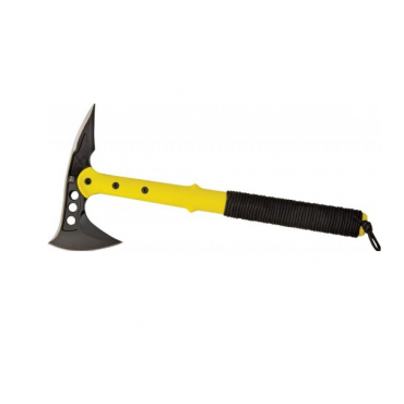 Das Tactical Tomahawk M48 Hawk wird von United Cutlery hergestellt und bietet dementsprechend eine hohe Qualität und unterschiedliche Verwendungsmöglichkeiten. Die Klinge ist schwarz und der Schaft gelb, wobei dieser im Griffbereich von Schnur fest umwickelt ist, um die Griffsicherheit zu erhöhen. Daher ist die Handhabung relativ einfach und sicher.