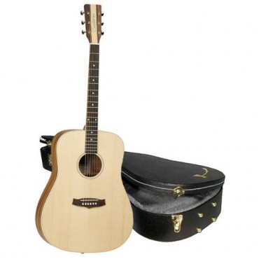 Das aus Fichte und Mahagoni hergestellte Instrument ist äußerst stabil und zusätzlich durch einen Koffer beim Transport geschützt. Sie verfügt über einen Cutaway zu angenehmeren Handhabung, die Mechaniken bestehen aus Nickel und ist vom Korpus über die Mensur, bis hin zumSattel hochwertigst verarbeitet.