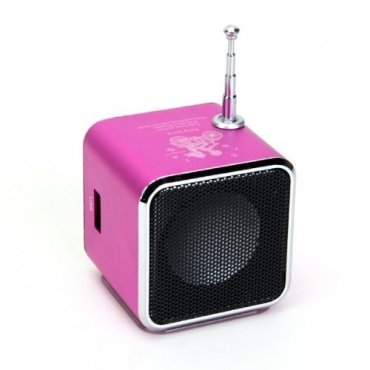 Die Farbe des Gerätes ist Pink. Das Gehäuse besteht aus einer Aluminium- Legierung. Der Lautsprecher verfügt über ein LED Display und Mehrfarben- Blinken an der Basis des Gerätes. Interface geeignet für Micro SD Slot, USB, 3,5mm Line-in, DC- Eingang und für einen 3,5mmm Audio-Ausgang. Die Kapazität des Akkus umfasst 600mAh, die Eingangsspannung DC 5 V. Funktioniert mit Built-in Batterie oder Mini USB. Der Ausgang beträgt RMS3W THD = 10%, der Frequenzgang 150- 1800Hz (± 3dB) und das Signal- und Rausch- Verhältnis von Power Amplifier 80dB. Zum Lieferumfang gehören der digitale Lautsprecher, ein USB- Kabel und ein Audio- Kabel.