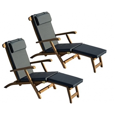 - sehr schönes Design im klassischen Stil, zwei Deckchairs und zwei Auflagen in diesem Set enthalten, sehr bequeme Deckchairs, robust gefertigt, kann einfach zusammengeklappt werden, sehr bequemes Liegen und Sitzen möglich, sehr gutes Preis-Leistungs-Verhältnis, Rückenlehne ist 4-fach verstellbar, wetterfeste Deckchairs