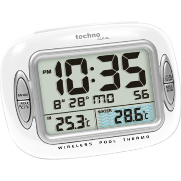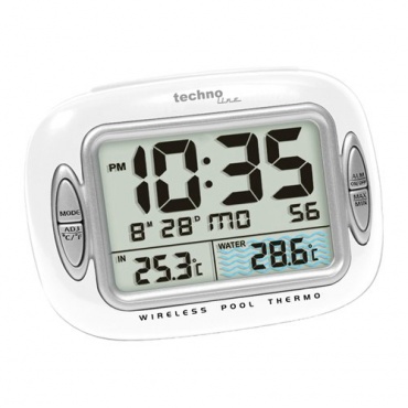 Das Technoline WS 9007 Poolthermometer in stylischem weiß ist ein wireless Poolthermometer mit Temperaturstation, Poolsensor, Quarzuhr, Temperaturalarm und Minimum/Maximum-Memory. Das Thermometer besteht aus einer schwimmenden Messstation und dem praktischen tragbaren Display, das auch bequem im Garten oder auf dem Tisch aufgestellt oder an einer Wand befestigt werden kann. Die Basisstation misst 130 x 57 x 92 mm und der Außensender 100 x 135 mm.