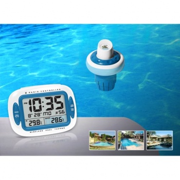 Dank der Displayanzeige auf dem Empfänger muss man nicht mehr ständig zum Thermometer laufen, um entsprechende Werte abzulesen. Neben der Uhrzeit werden Datum, Wochentag, Innentemperatur und Außentemperatur angezeigt. Auch eine Min/Max-Speicherung ist vorhanden. Die Temperatur kann in °C oder in Fahrenheit angezeigt werden. Eine praktische Temperaturalarmfunktion hält alle Badenixen immer auf dem Laufenden. Wenn sich die Batterie dem Ende neigt, wird auch das angezeigt.