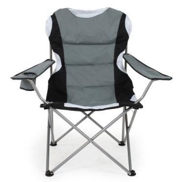 Der Campingstuhl lässt sich leicht handhaben und schnell aufklappen. Der Kunststoffsockel sorgt für einen sicheren Stand, das integrierte Netzgewebe trägt zu einer guten Luftzirkulation bei. Hergestellt ist der Stuhl aus pulverbeschichtetem Stahl, Textil 100% Polyester mit einer Schaumpolsterung. Das Polyester ist wasserabweisend. Da der Campingstuhl klappbar ist, lässt er sich platzsparend lagern und auch gut im Auto transportieren.