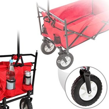 Der TecTake Bollerwagen ist ein faltbares Modell. Er eignet sich besonders für Familien und Kitas die gerne weitere Ausflüge machen und ab einem Zielort ihren Spaziergang mit dem Wagen fortsetzen möchten. Der Bollerwagen ist komplett faltbar und leicht in einer Tasche im Kofferraum verstaut.