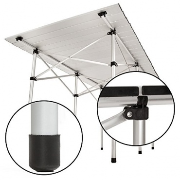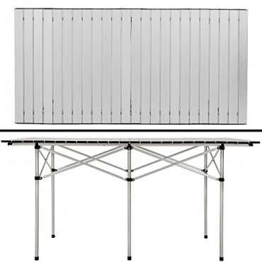 Das Gestell des TecTake XXL Alu Campingtisch besteht aus leichtem Aluminium und ist dennoch sehr robust. Die Tischplatte besteht aus einem wetterfesten Material, sodass der Tisch auch einen Regen unbeschadet übersteht. Wird der Campingtisch nicht mehr benötigt, lässt er sich platzsparend einklappen und in der mitgelieferten Tragetasche verstauen. So benötigt der Tisch nicht sehr viel Stauraum, wenn man sich entschließen sollte, einen anderen Campingplatz aufzusuchen. Der Campingtisch XXL von TecTake ist beim Campen oder im Garten ein praktischer Begleiter.