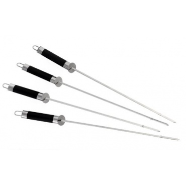 Die Spieße sind rostfrei und ganz leicht zu reinigen. So finden sie immer wieder einen optimalen Einsatz und sorgen für die buntesten Fleischspieße. Mit einem sehr leichten Gewicht von 272 g sind die Spieße ausgesprochen handlich. Der Kunststoffgriff ist griffig, so dass die Spieße nicht aus der Hand rutschen können. Ein Komfort, der das Grillen gleich noch interessanter gestaltet. Im 4er Pack bieten die Spieße die Möglichkeit viele verschiedene Fleischsorten zuzubereiten.