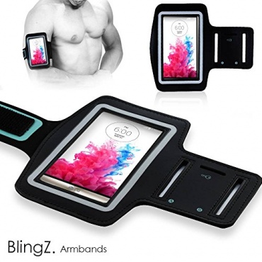 Das TheBlingZ Sportarmband dient dem Tragen des Smartphones am Oberarm während sportlicher und Freizeit-Aktivitäten. Die schwarze Schutzhülle ist passend für alle Smartphonemodelle der Typen LG G2 und LG G3. Während des Trainings ist das Smartphone im Sportarmband immer dabei und jederzeit greifbar. Es sitzt fest in der Tasche, bleibt bedienbar und der Kopfhörerausgang ist jederzeit nutzbar. Das wasserdichte Material sowie die Schutzkappe und die Displayfolie verhindern das Eindringen von Regen oder Schmutz auch während des Outdoortrainings.