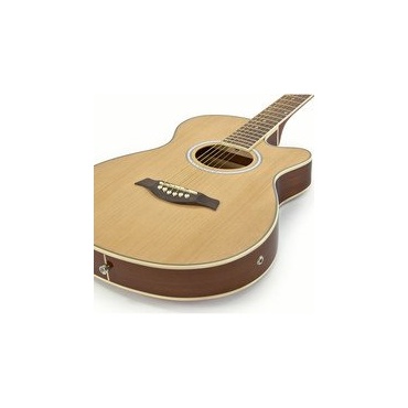 Die Thinline Elektro-Akustik ist eine hochwertige Gitarre von Gear4music. Sie ist sehr handlich konstruiert und hat ein On-Board Preamp und Vier-Band EQ. Die Töne entstehen durch Zupfen oder Schlagen der sechs Saiten. Das Material und die Qualität der Decke ist hervorragend.