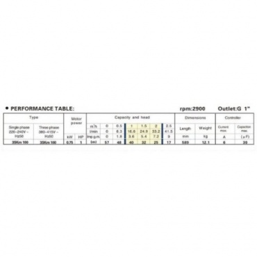 Bei einer Förderhöhe von 32 m beträgt die Förderleistung 1,5 m³. Bei Verwendung zur Hauswasserversorung oder Gartenbewässerung sollte der Höhenunterschied von Entnahmestelle und Brunnen-Wasserspiegel nicht mehr als 10 - 13 m betragen. Bei dieser Förderhöhe ist ein ausreichender Volumenstrom vorhanden für etwa eine Brauchwasser-Versorgung einer WC-Spülung. Die Pumpe ist geeignet für Brunnen ab 80 mm Durchmesser. Die Tiefbrunenpumpe ist ideal zur Förderung von Flüssigkeiten ohne aggressive Stoffe.