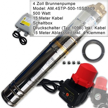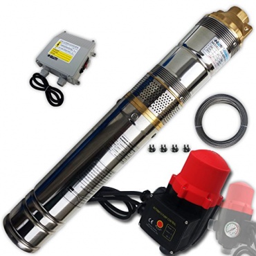 Das All-in-One Paket zur autarken Wasserversorgung für Bohrlöcher ab 100 mm Durchmesser. Die Pumpe garantiert eine Wasserversorgung aus einem engen Tiefbrunnen. Ein platzraubendes breites Brunnenloch ist daher nicht notwendig. Die Tauchpumpe ist im privaten Bereich ebenso einsetzbar, wie im gewerblichen, und leistet überall dort gute Dienste wo ein großer Wasserverbrauch notwendig ist.