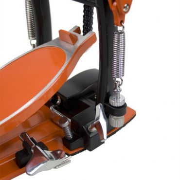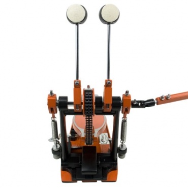 Die Doppel-Fußmaschine DHW77-CM von Tiger ist für die Bassdrum geeignet. Die Fußmaschine besitzt zwei Schlägel, sodass das Spielen von Doublebass möglich ist. Die Ansteuerung der Schlägel erfolgt über ein fest montiertes und ein an einer Kardanwelle hängendes Pedal. Die Doppel-Fußmaschine ist in frischem orange und etwas schwarz gehalten, was sie zu einem Highlight macht.