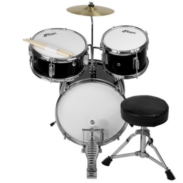 Im Set enthalten sind ein Bass-, Tom- und Snare-drum, sowie ein Crash-Becken. Die Becken-Ständer sind verstellbar.