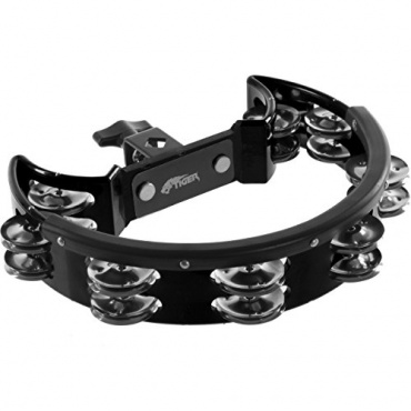 Die schwarze Tiger TAM70-BK Tiger Halbmond-Tambourine wird mit Montierhalterung geliefert. Diese hervorragende Halbmond-Tambourine besitzt sechzehn Schellenpaare und kann mit HIlfe der Halterung an Schlagzeugständern, wie zum Beispiel einem Becken befestigt werden.