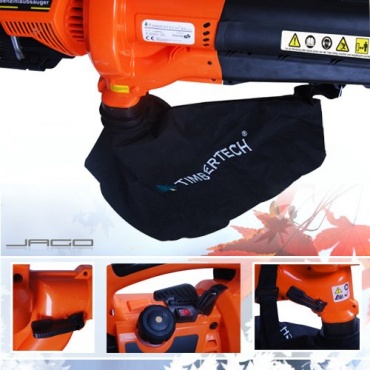 Der Timbertech Laubsauger liegt nicht nur griffig in der Hand, sondern bietet eine hohe Qualität durch seinen integrierten 2-Takt-Motor bei einer effizienten Leistung von 0,75 KW mit einem PS. Mit gerade einmal 6 Kg Gewicht, lässt sich der Timbertech Laubsauger mühelos bedienen und bietet ausreichend Platz bei einer Größe des Auffangsackes von 35 Litern.