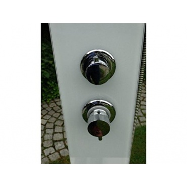 Diese elegante Pooldusche der Firma Ideal besticht durch ihr modernes Design und ihre klaren Formen. Die Pooldusche wirkt sehr langlebig und wurde aus glänzendem Edelstahl, weißem Sicherheitsglas und Kunststoff gefertigt. Die Dusche nimmt wenig Platz weg und kann so in fast jedem Garten untergebracht werden. In der Dusche kann kalt und warm geduscht werden und als Anschlüsse stehen Flexschläuche zur Verfügung.