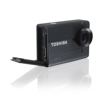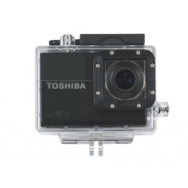 Die Toshiba Actionkamera ermöglicht Videoaufnahmen in Full-HD mit einer Auflösung von 1920 x 1080p. Das integrierte LCD-Display hat eine Diagonale von 5,08 Zentimeter beziehungsweise zwei Zoll. Das Gehäuse der Kamera ist wasserdicht. Eine Fernbedienung für bequeme Schnappschüsse ist vorhanden, sowie etliche Befestigungs-Kits. Die Toshiba ist per WiFi steuerbar.
