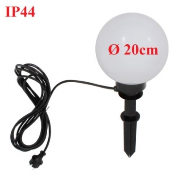 Aus Kunststoff ist die Trango® LED Gartenkugelleuchte 200mm Durchmesser TG200B gefertigt. Die Gartenkugelleuchte hat einen Durchmesser von 20cm und benötigt zum Betrieb einen Stromanschluss. Zur Sicherstellung vom Stromanschluss verfügt die Gartenkugelleuchte von Trango über eine 5m lange Zuleitung. Der Stromverbrauch beträgt bei der Kugelleuchte 2 Watt in der Stunde. Zum Schutz verfügt die Gartenkugelleuchte über die Schutzklasse IP44. Die durchschnittliche Lebensdauer bei der Gartenkugelleuchte wird mit 25000 Stunden angegeben. Zur Aufstellung der Leuchte, verfügt diese über einen Erdspieß. Gartenkugelleuchte Die Farbe der Gartenkugelleuchte ist weiß/schwarz.