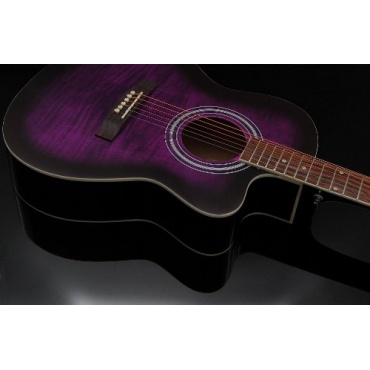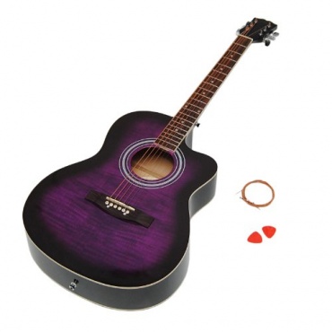 Diese Design Akustik Gitarre spielt sich nicht nur gut, sie sieht auch so aus. Es ist vor allem die Farbe Flieder, welche zum träumen einlädt und dieser Gitarre das gewisse Etwas verleiht. Nicht viele Gitarren können mit solch einer Schönheit überzeugen. Darüber hinaus kann sich der Preis, als auch die hochwertigen Saiten sehen lassen.