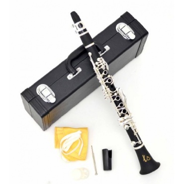 Die Klarinette der Marke ts Music Fidelity ist für Kinder im Alter bis etwa 10 Jahre optimal geeignet. Der Korpus des Musikinstrumentes ist in Kunststoff gefertigt und hat eine hochwertige Holz-Oberflächenstruktur. Insgedamt verfügt die Klarinette über 17 Klappen und eine Mechanik, die komplett versilbert ist.